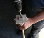 Der Laternenstab wird mit fester Grundplatte und separater Platte an der Laterne verschraubt