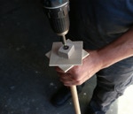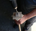 Der Laternenstab wird mit fester Grundplatte und separater Platte an der Laterne verschraubt